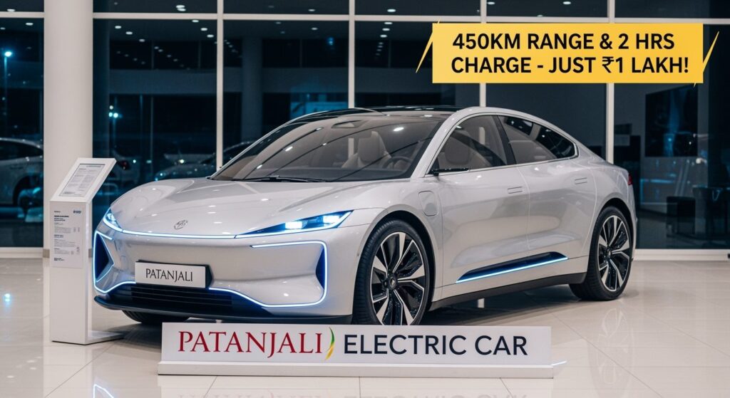 पतंजलि इलेक्ट्रिक कार: मैं आज आपको एक ऐसी खबर देने जा रहा हूँ जो ऑटोमोबाइल सेक्टर में तहलका मचा रही है। Patanjali Electric Car का धमाका! ₹1 लाख में 450KM रेंज और 2 घंटे फुल चार्ज – मार्केट में मचा तहलका है। जी हाँ, बाबा रामदेव की कंपनी पतंजलि ने इलेक्ट्रिक वाहन मार्केट में धमाकेदार एंट्री की है। क्या आप सोच सकते हैं कि मात्र ₹1 लाख में 450KM की रेंज वाली कार? यह सुनकर तो हर कोई हैरान है!